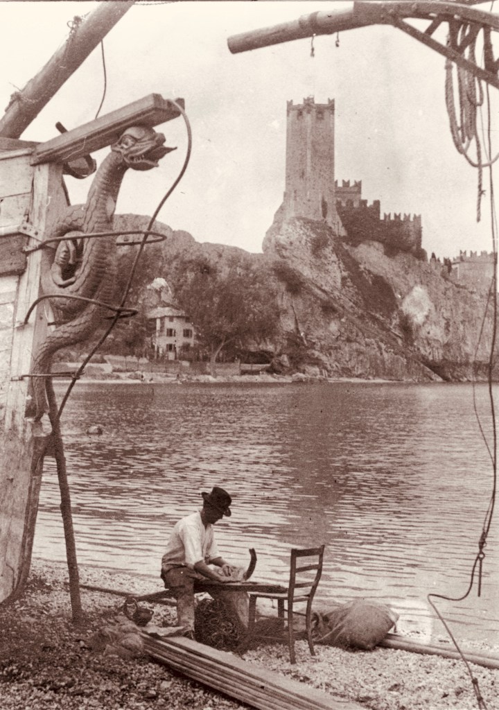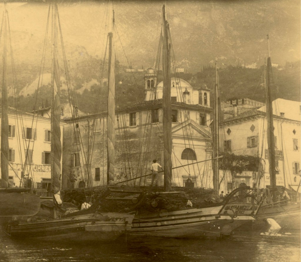 La Malvista, a sinistra, assieme alla Sant’Angela Merici nel porto di Malcesine negli anni ’20.