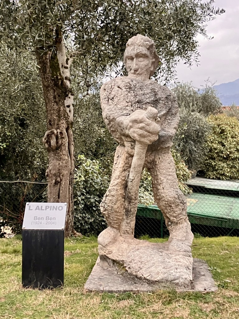 Anche se autodidatta, Ben Ben, ha dedicato molti anni allo studio del disegno e della scultura. Fra i suoi lavori hanno ottenuto uno spazio molto rilevante gli schizzi e le caricature realizzati sulle piazze di Malcesine, Roma e altre località italiane. Per creare le sue sculture percorreva le pendici del Monte Baldo alla ricerca dei sassi nei quali solo lui riusciva a vedere la statua. Una di queste è proprio “l’alpino”.