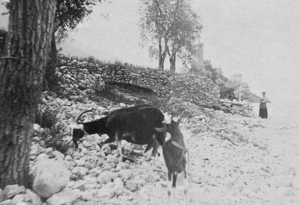 Alcune capre al pascolo sulla riva del lago nei pressi di Paina granda agli inizi del 900.